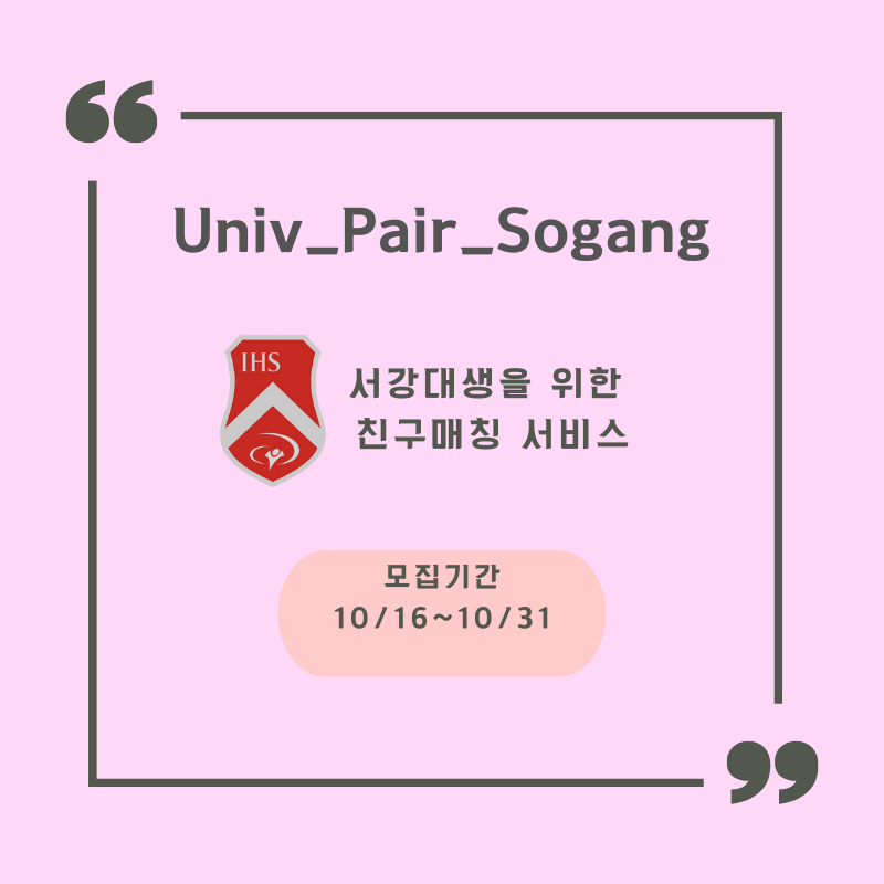 화제의 1:1친구매칭 서비스 유니브페어 서강 season 1 오픈(10.16)