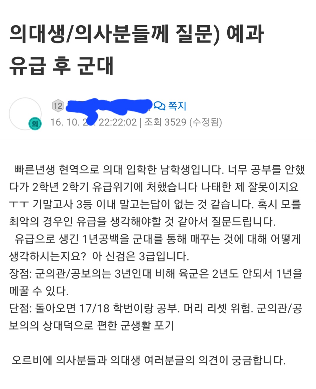 찾아보니까 의대 40개 중에 216명이던데 유급생 아니면 아싸들만 현역병으로 입대한다고 봐야겠네ㅋㅋ