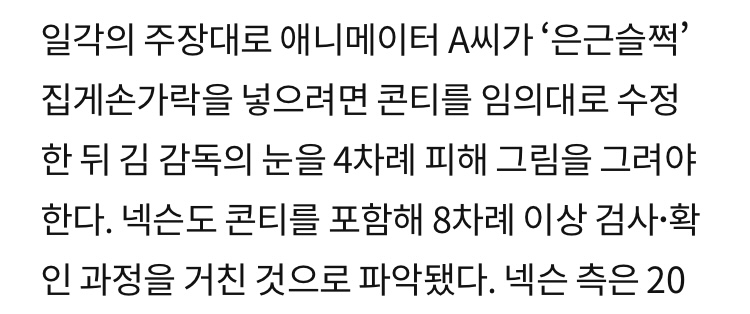 애니메이터들은 콘티대로 그려야하고 수정이 불가능하다