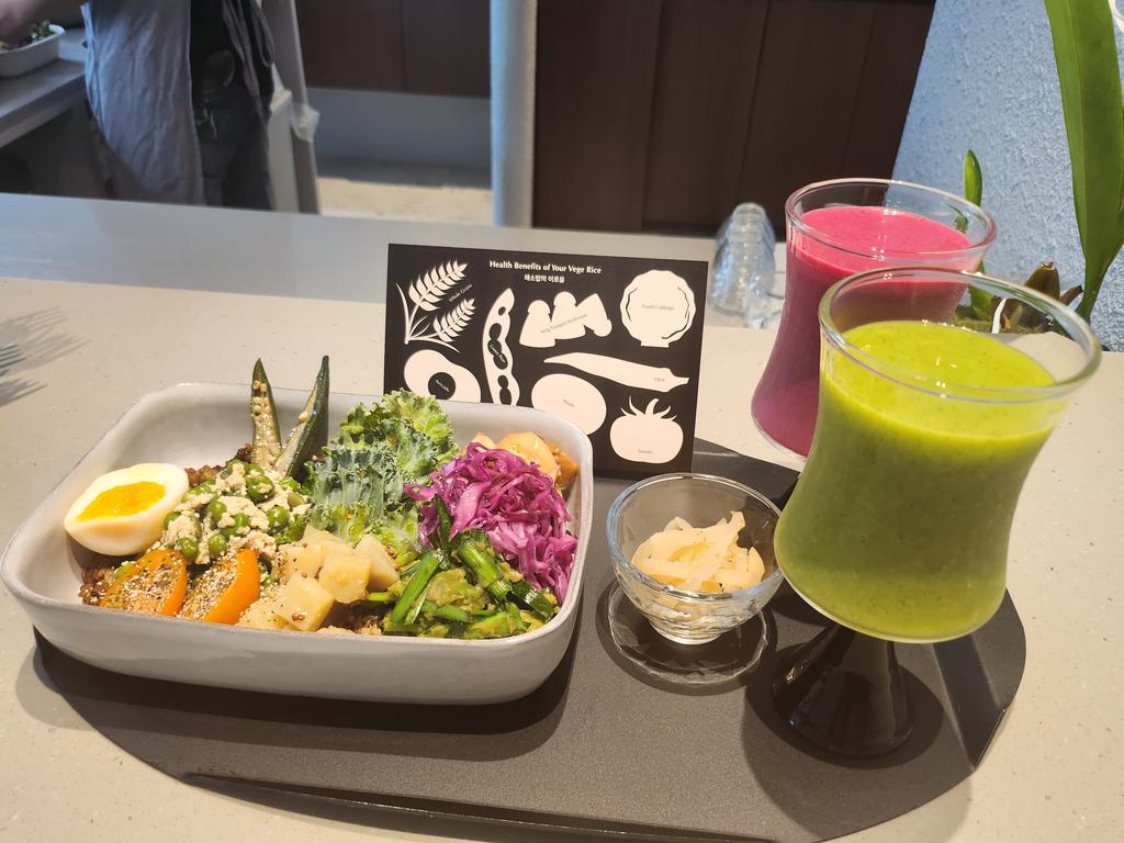 채식한상(런치 만오천원정도), 과채주스(잔당 5천5백원) 위주로 판매하는 곳인데 넘나 맛있어서 다 먹게 되더라구 ㅎㅎ