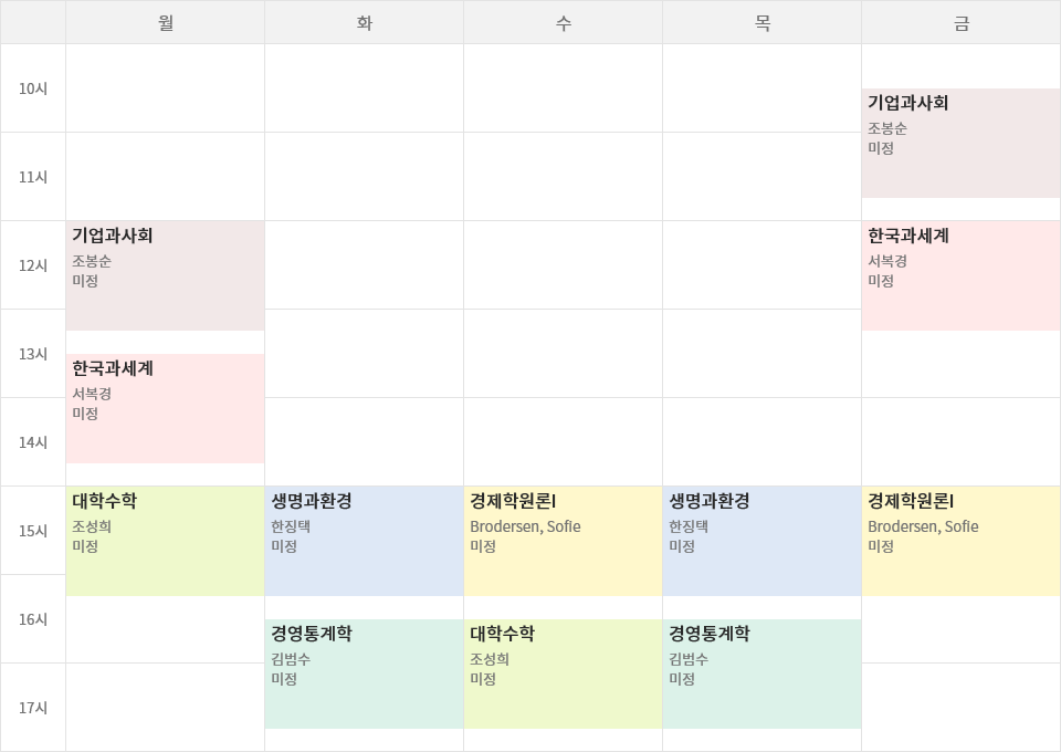 오 경영대후배님ㅎㅎ 시간표 잘짜셨네요