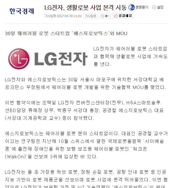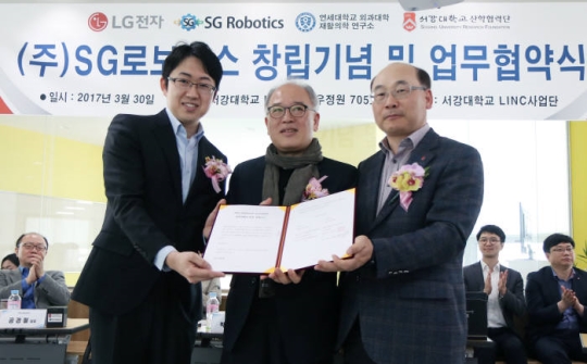 그 유명한 사이배슬론(국제로봇올림픽)에서 세계 3위를 한 공경철 교수님의 서강대 스타트업 SG로보틱스와 맺는 생활로봇 관련 전방위적인 산학협력 같습니다.