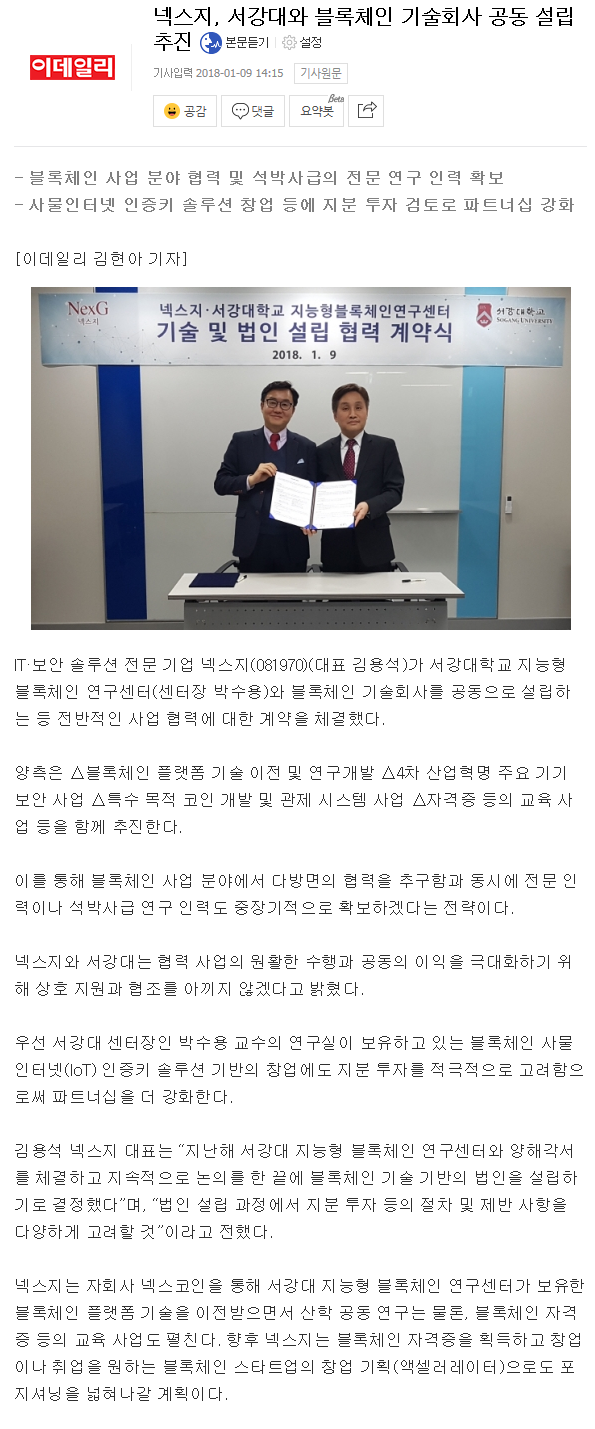 단순한 산학협력 투자 유치를 넘어서 넥스지의 지원 하에 회사 설립까지 진행되었습니다.