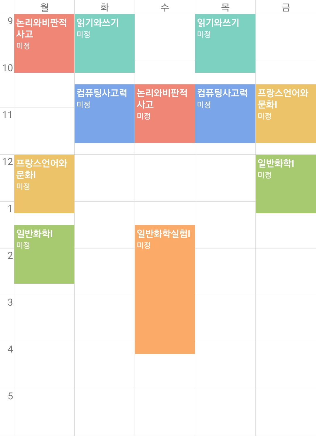 그리고 화학과 34학기는 어쩔수 없이 화목1교시니까 1학년땐 1교시 넣지 말아요....ㅋㅋㅋㅋㅋㅋㅋㅋㅋ