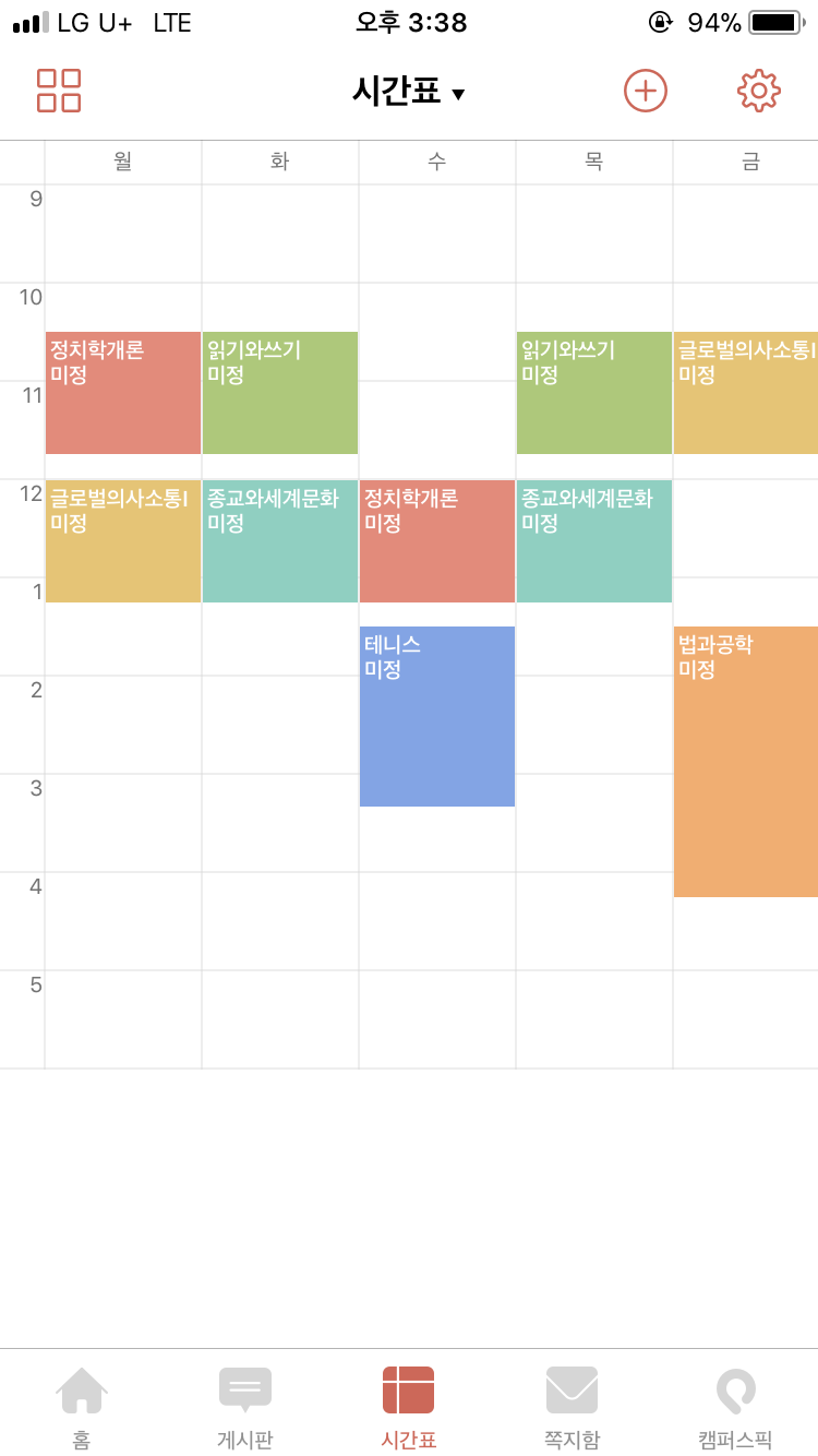 시간표 예뻐용 근데 운동과목 수강신청 빡세니 화이팅 ㅠ