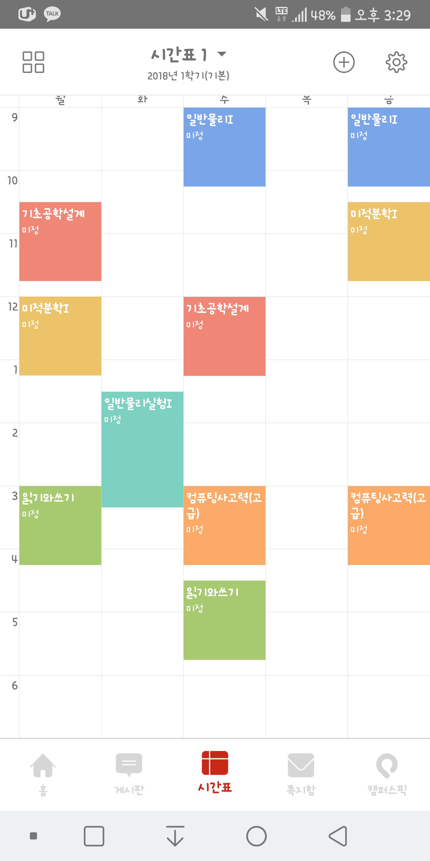 시간표 어떤가염?? 작년 요람보고 짰는데 이렇게 밖에 안나와여..19학점 채우고싶어서 교양 더 추가할 생각이에요