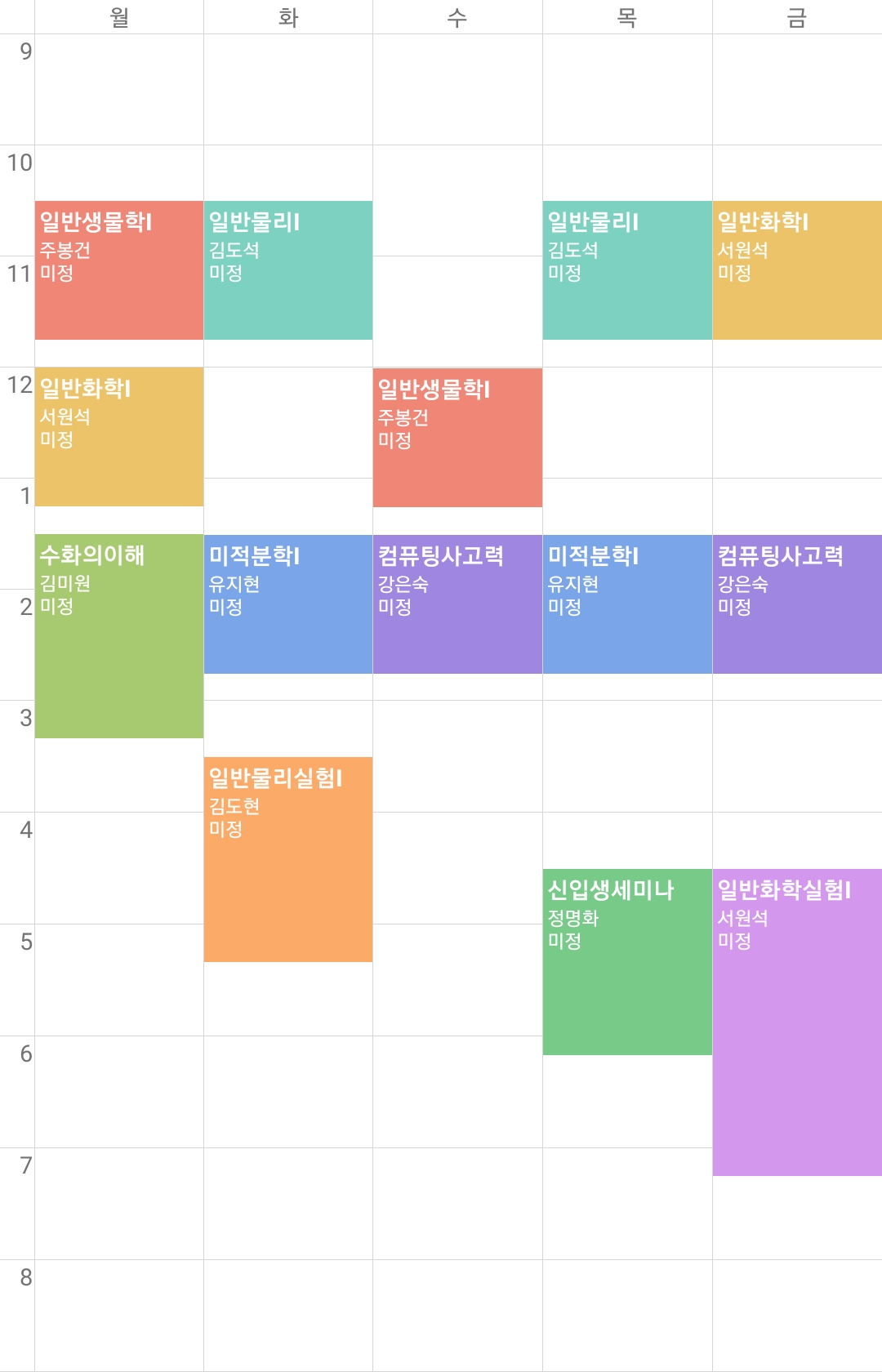 물리학과인데 시간표 괜찮은가요? 수화의 이해는 그냥 2학점 남길래 S/U과목 중에 하나 넣어봤어요.