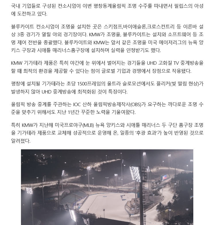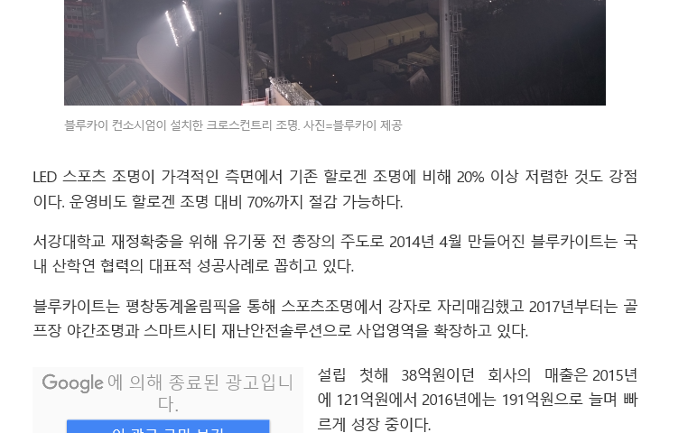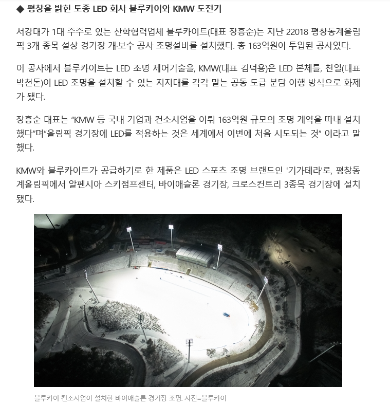 2014년 매출 38억 -> 2015년 121억 -> 2016년 191억 -> 2018 평창올림픽 조명공사 수주
