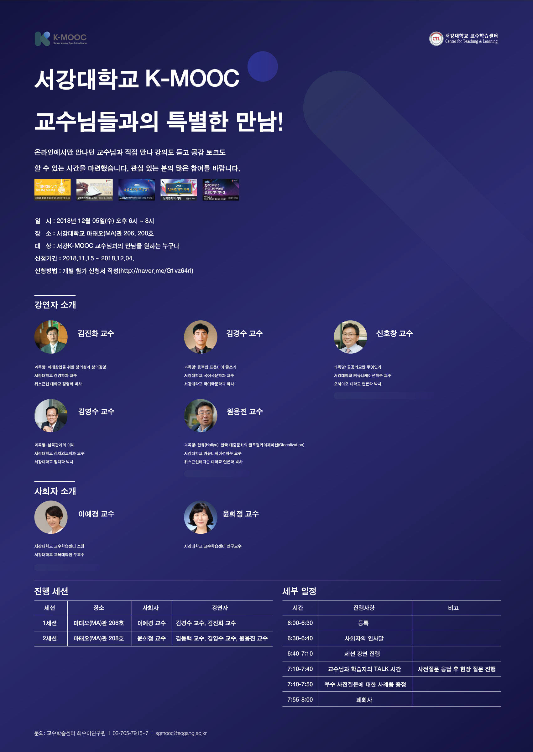 12월 5일 (마태오관)MA206, MA208에서 K-MOOC오프라인 특강이 진행될 예정입니다. 강의를 듣고 있는 학습자가 아니더라도 참여 가능하니, 포스터를 참고하여 많은 참여 부탁드립니다.