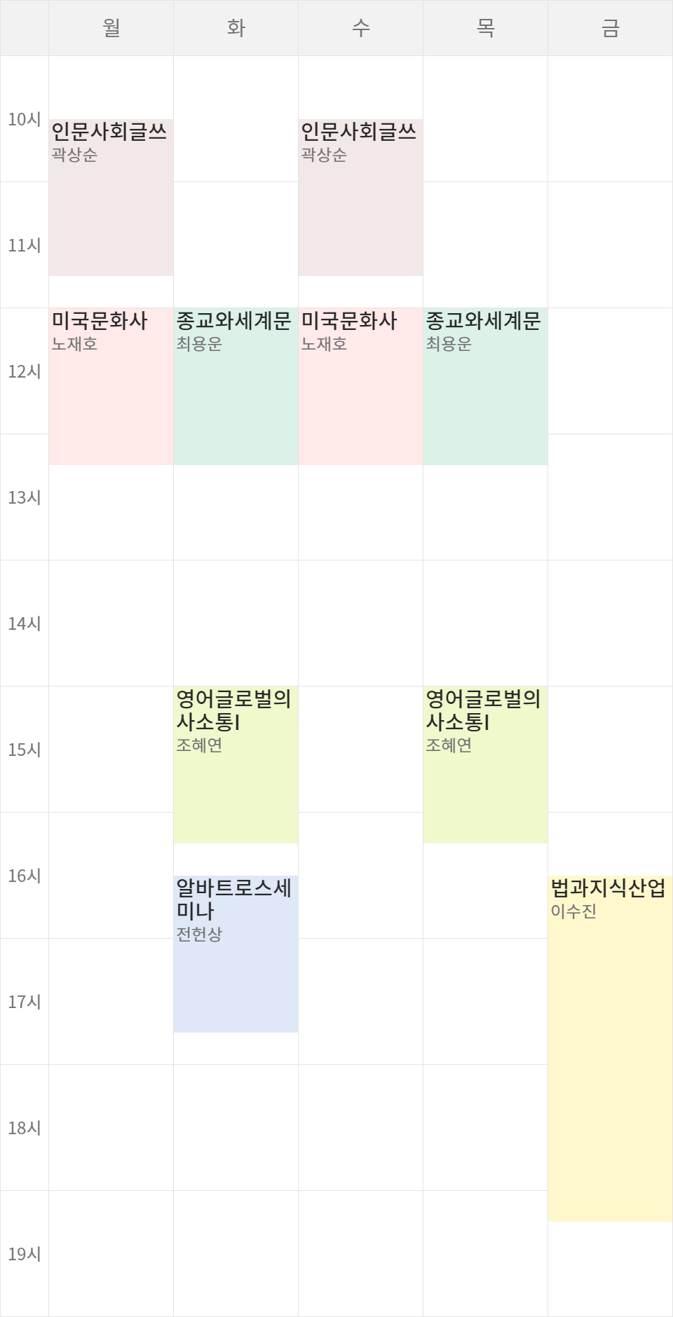 아 찾아보니까 그러네요 ㅠㅠ 전 영미문화 알바트로스 세미나를 듣고싶은데, 그럼 금요일 법과지식산업 과목을 드랍하고 다른 강의를 신청해야하나요..? 아님 걍 첫번째 사진대로 할까요..
