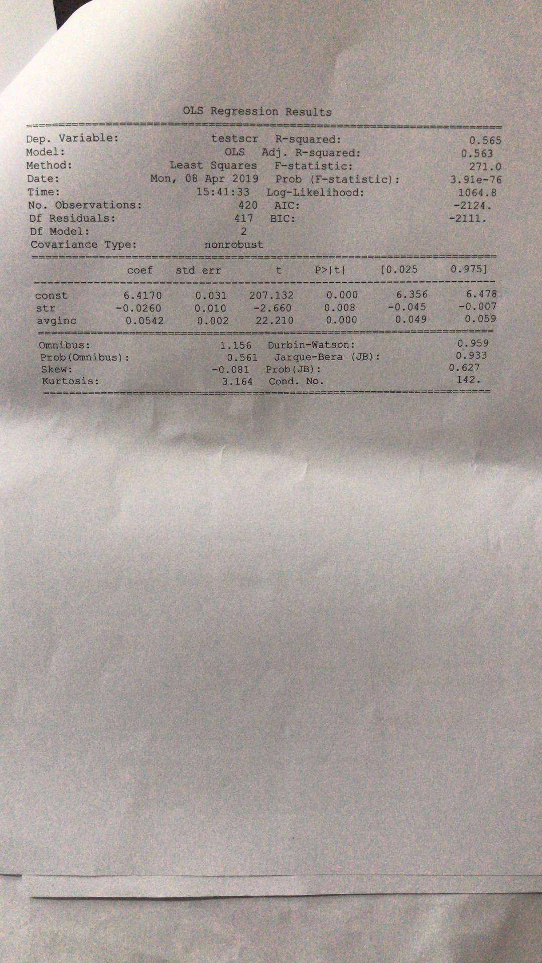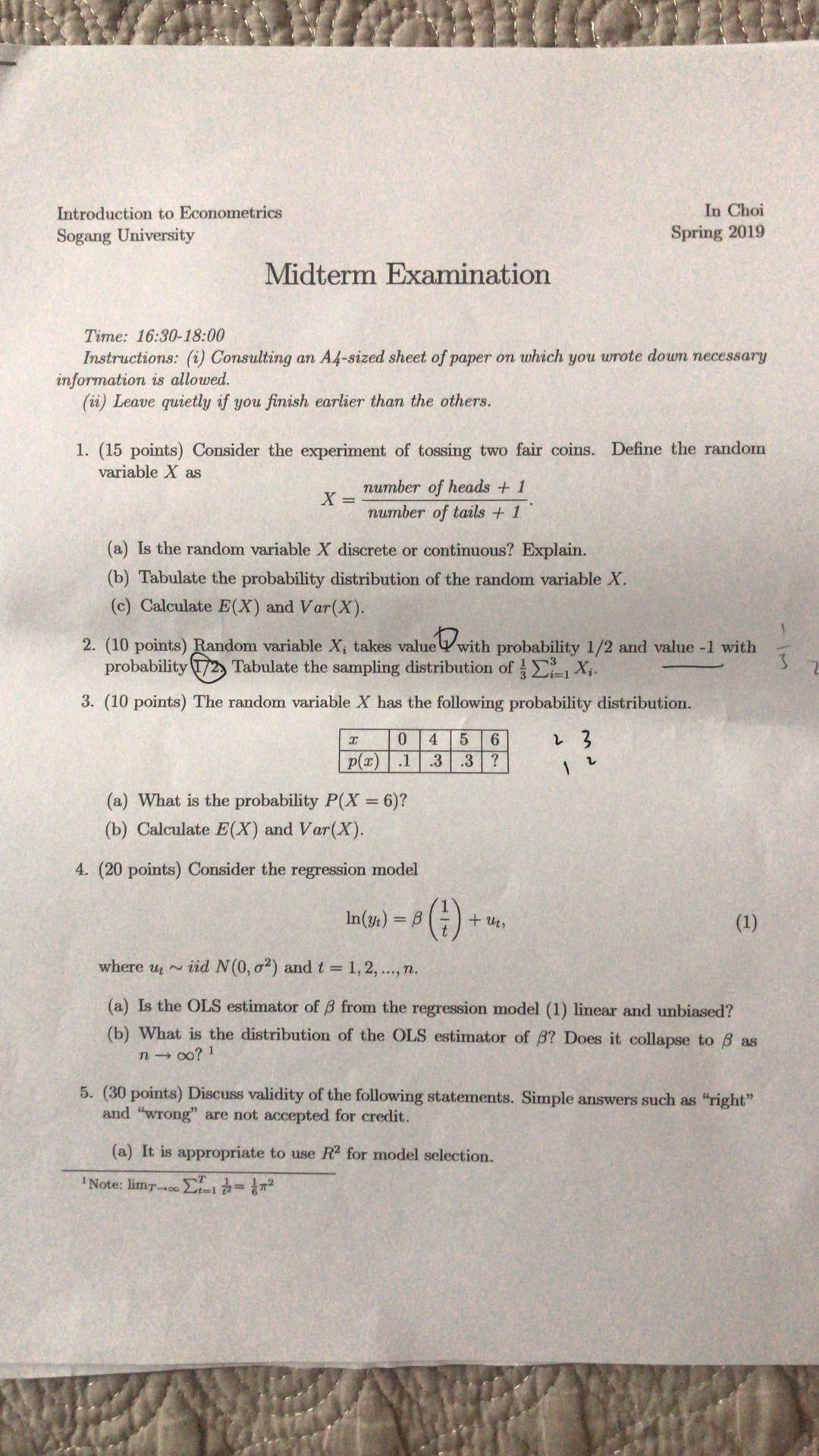 최인 계량경제학 2019년도 1학기 중간시험