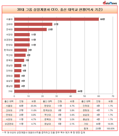 요즘 대겹 CEO들은 이공계 출신들도 많음. 그러므로 적은 이공계 졸업생 숫자를 감안할때 충분히 자부심 가질만한 자료임.