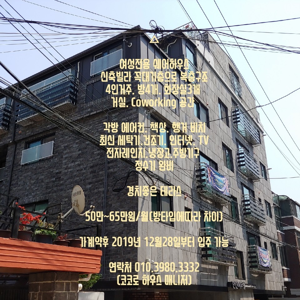 지금 제가 살고 있는 쉐어하우스 주인아주머니의 부탁으로 여성전용 쉐어하우스를 소개합니다.