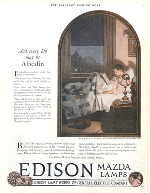 <The Saturday Evening Post 지에 있는 Edison Mazda Lamps 광고면>