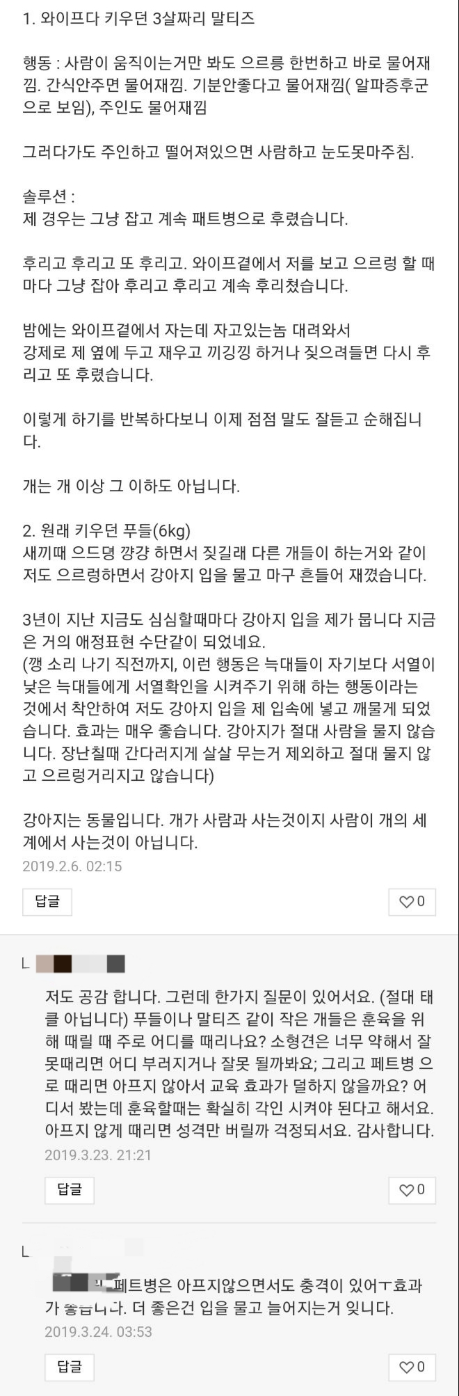 난 강아지 교육하는데 폭력은 답이 아니라고 생각하는데아직도 때리는게 답이라고 생각하는 사람이 있다니...