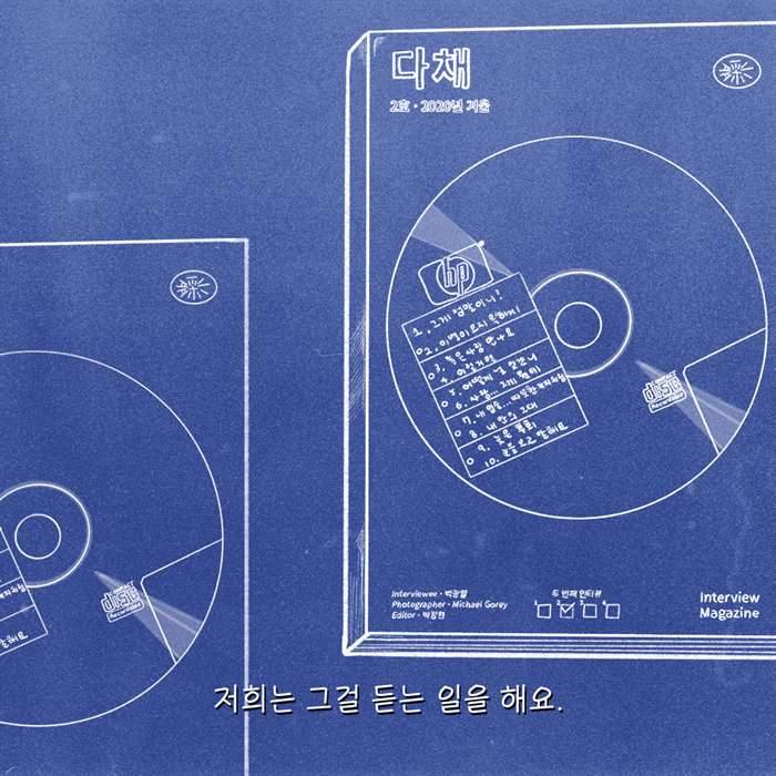 다채는 한 호마다 하나의 인터뷰 소재를 가지고 사람들을 심층 인터뷰하는 잡지입니다. 다채 1호의 '지갑'에 이어, 2호의 소재는 '플레이리스트'입니다.