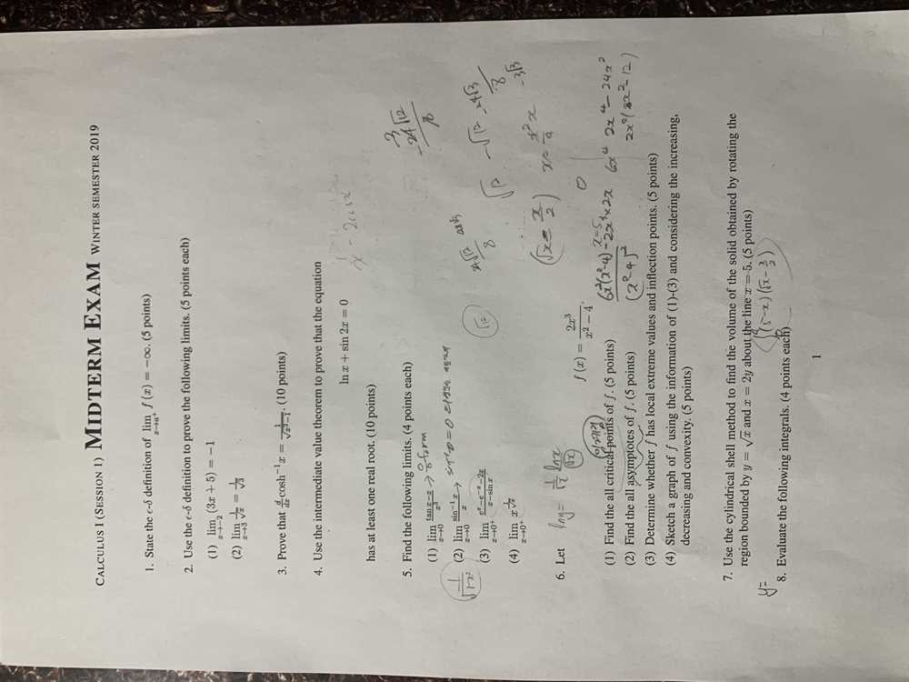 이영록 교수님/미적분학1/2019학년도 동계학기/중간고사
