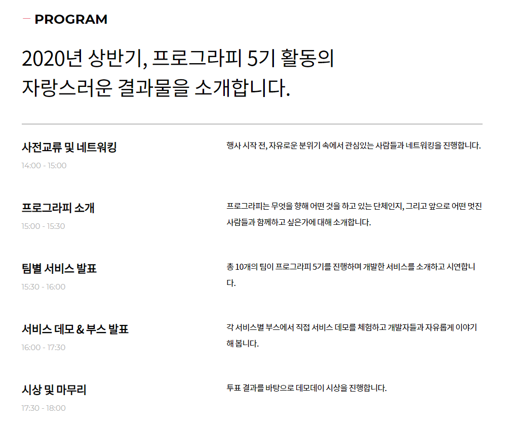 세상에 필요한 IT 서비스를 만드는 모임. 프로그라피 5기 데모데이에 여러분들을 초대합니다!
