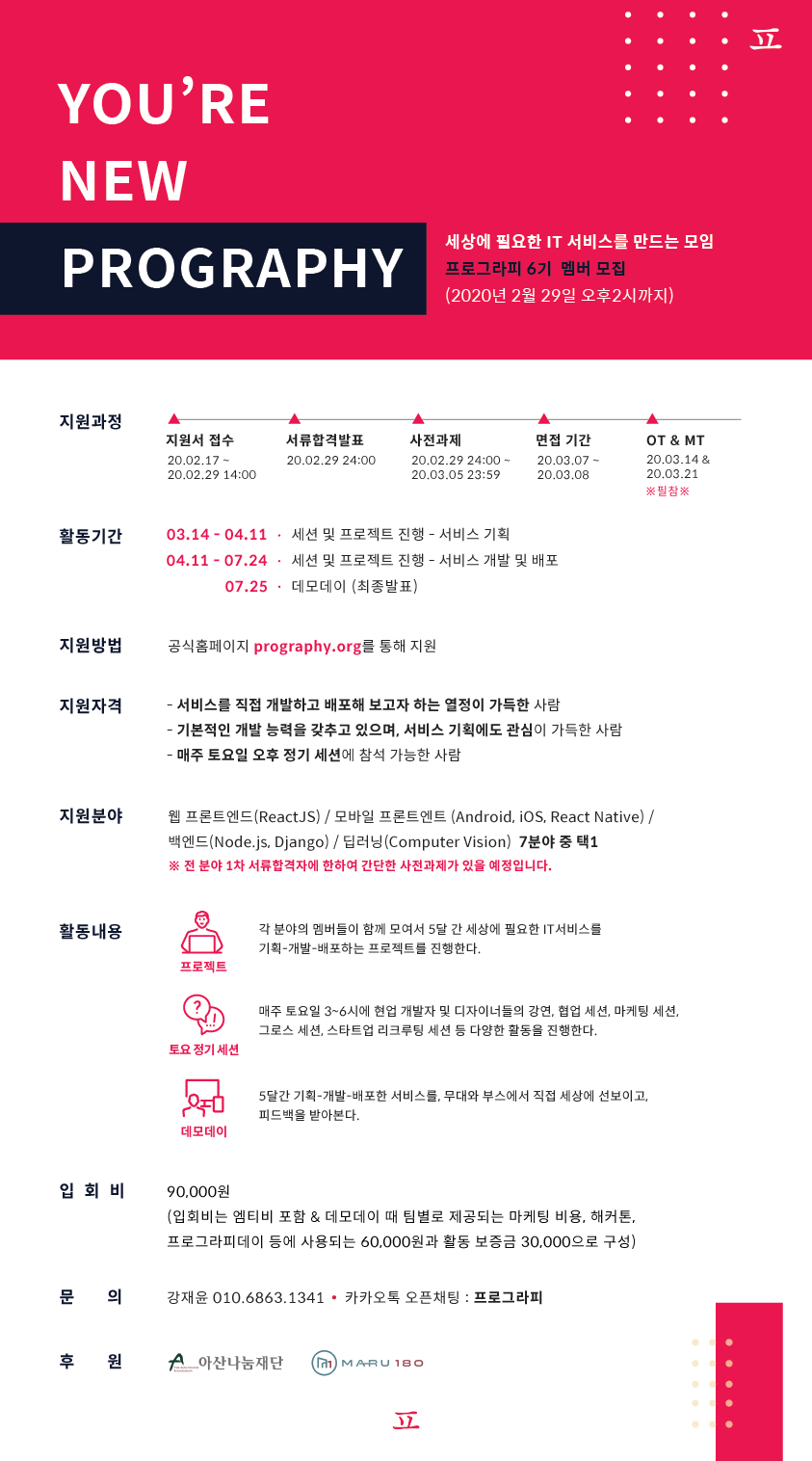 (~2/29) IT 프로젝트 단체 프로그라피에서 6기 회원을 모집합니다!