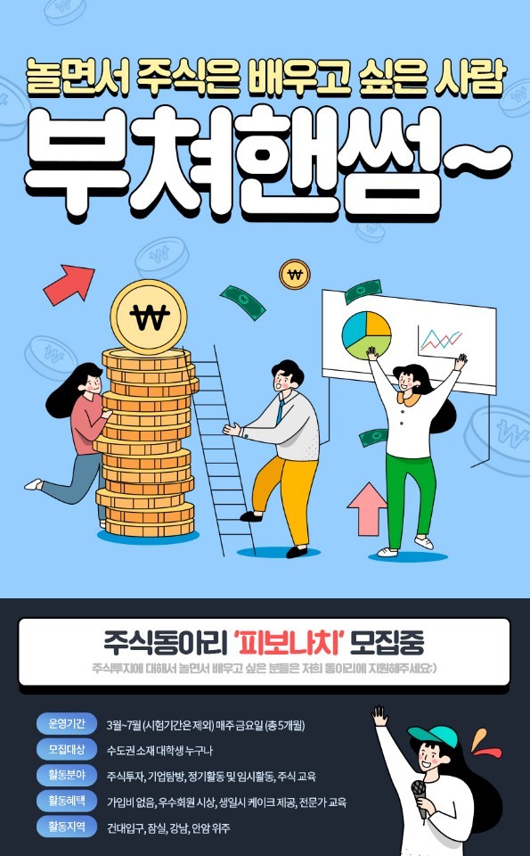 주식&친목 동아리 피보나치에서 동아리원을 모집합니다.
