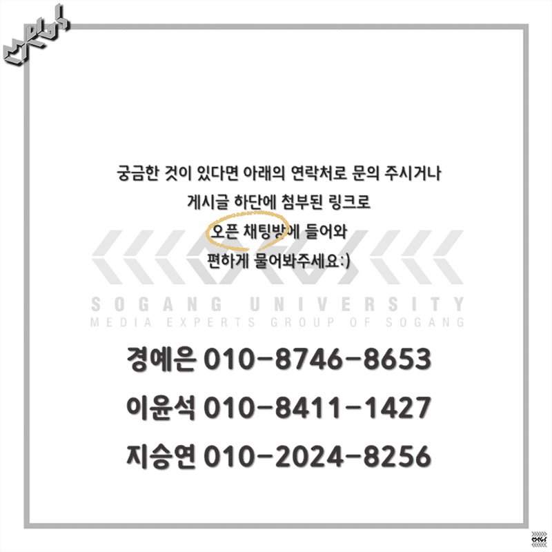 궁금한 점은 오픈카톡으로 연락주세요!!