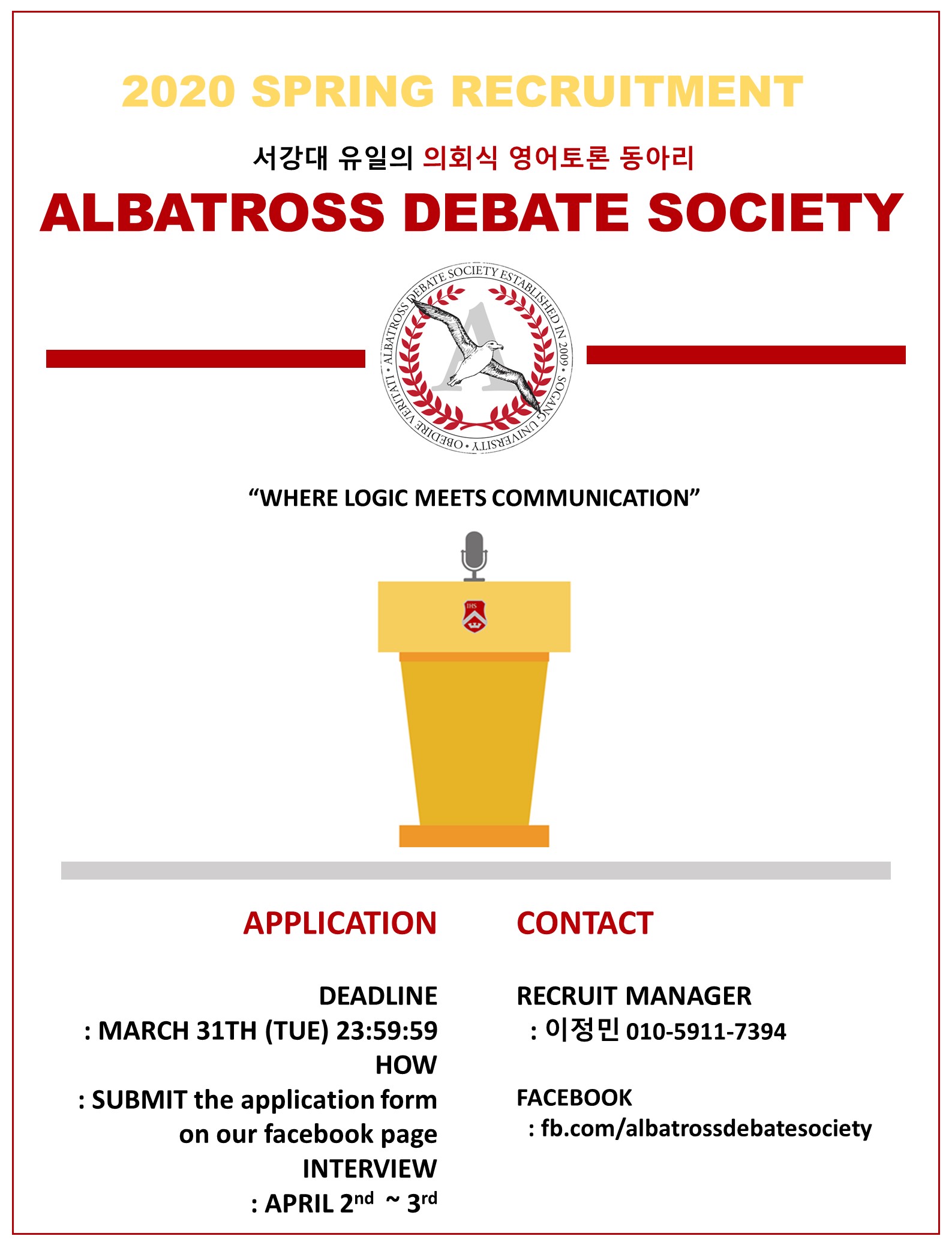 ★ Albatross Debate Society 2020 Spring Recruitment Notice ★