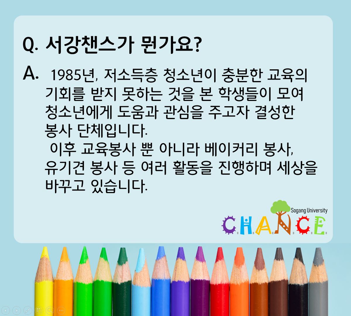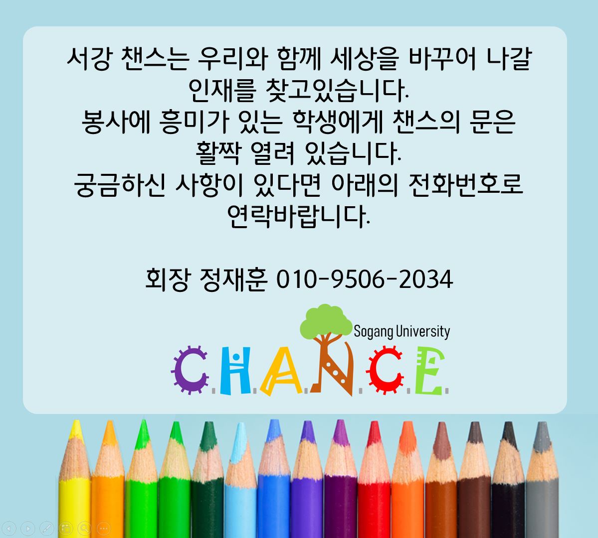 서강대 교육봉사 중앙동아리 서강CHANCE의 36기 인재를 모집합니다!