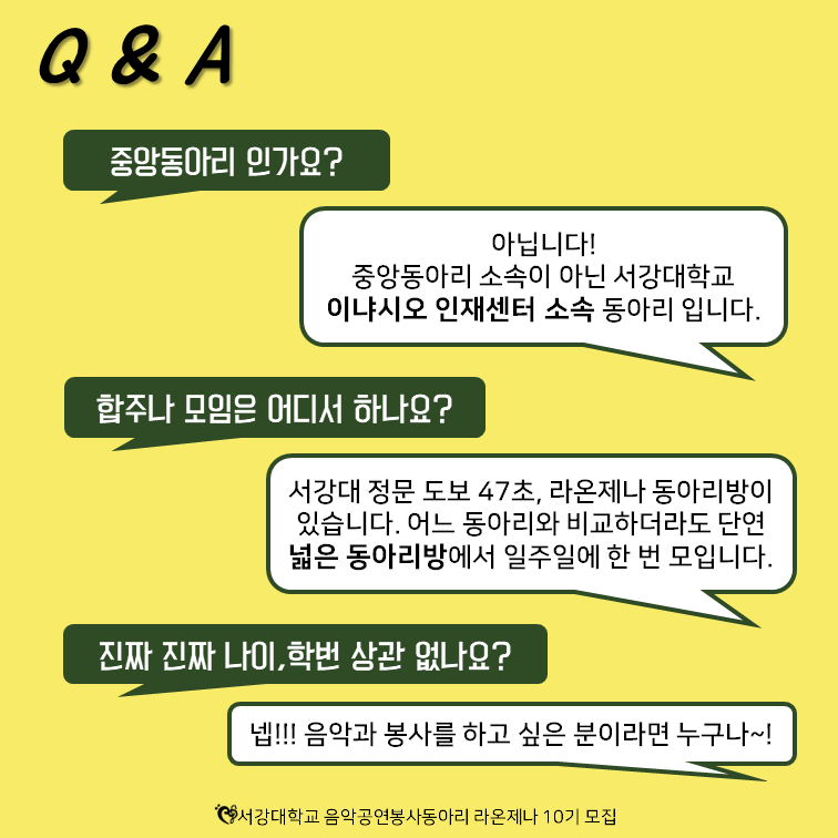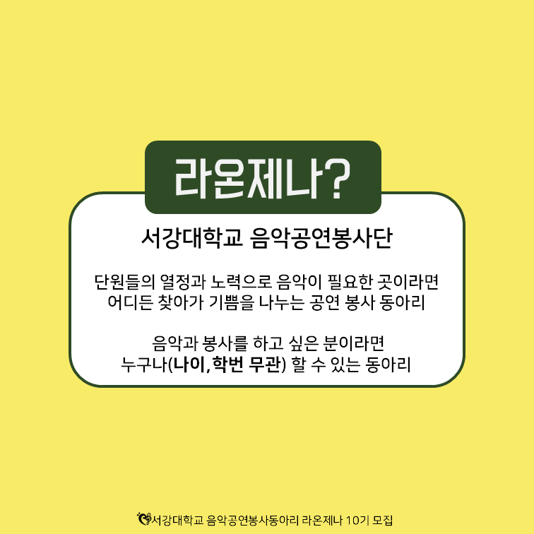 <서강대학교 유일의 음악공연봉사단 라온제나 10기 지원마감 D-7>