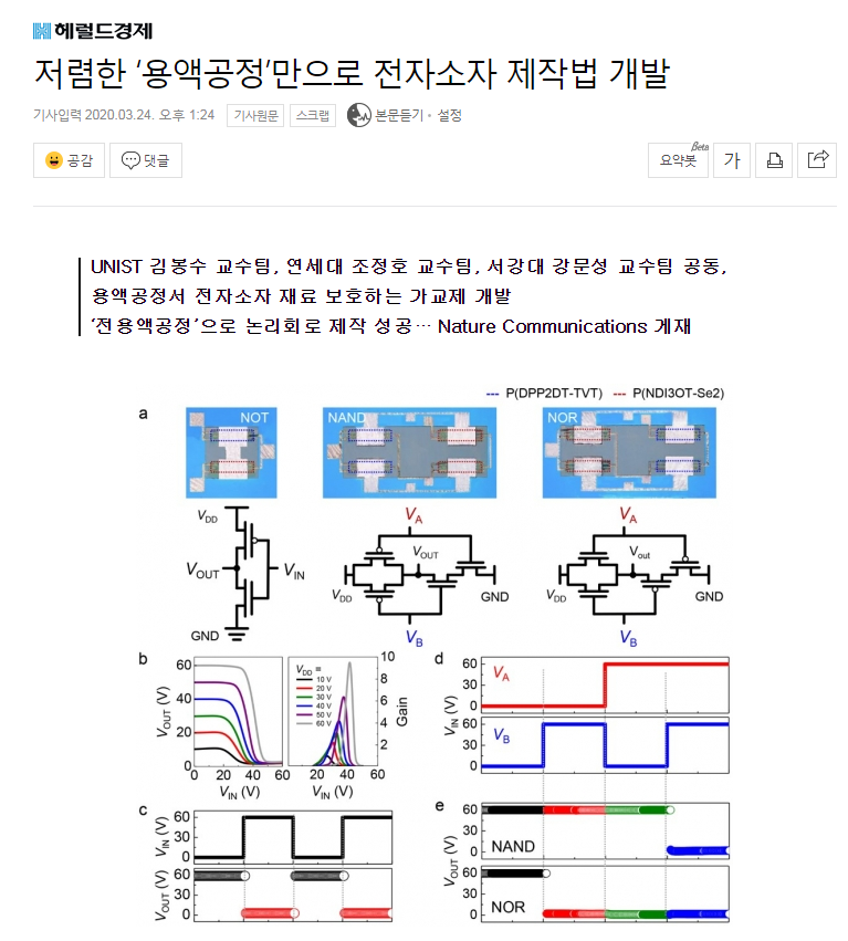 서강대 강문성 교수팀 외 2개 대학팀, 저렴한 ‘용액공정’만으로 전자소자 제작법 공동개발