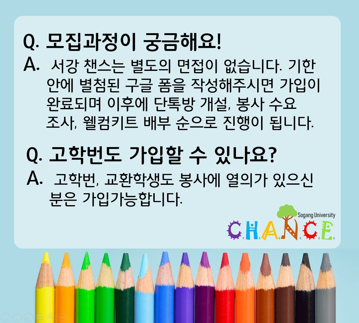 챈스는 저소득층 청소년에게 교육봉사를 제공하기 위해 탄생했는데요,