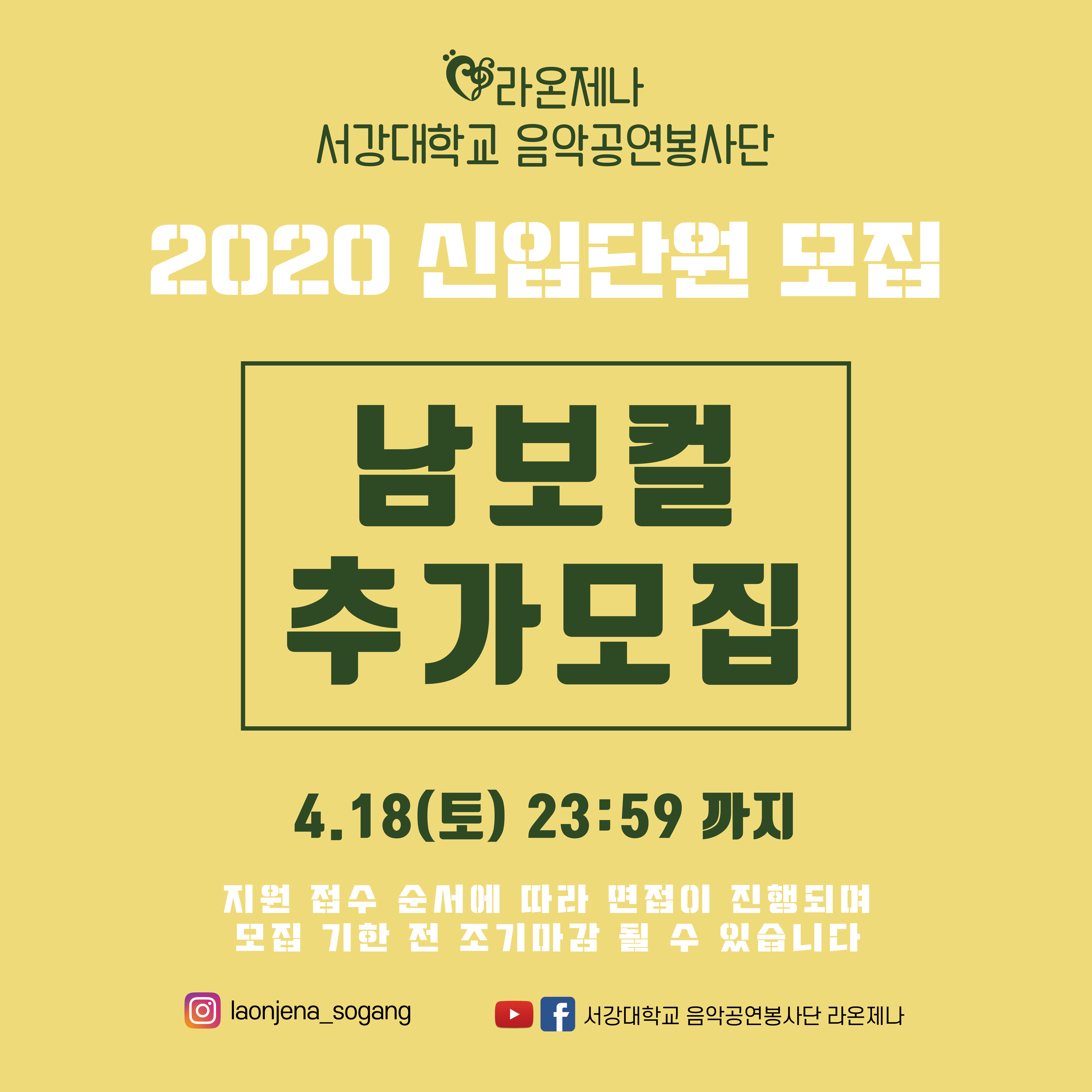 당신의 대학생활 하이라이트가 될 라온제나 입단! 모두가 남보컬 한 사람을 기다리고 있습니다. 이 글을 보며 고민하고 있는 당신, 어서 지원하세요!