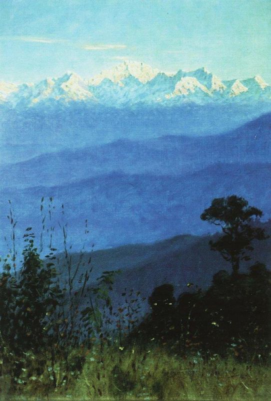 비록 전쟁을 그린 작품으로 제일 잘 알려져 있지만, 베레시차긴은 이 작품처럼 평화로운 풍경을 묘사하는 데에도 뛰어났어. 이 그림 속에서는, 베레시차긴은 능숙하게 뒷 배경에는 눈으로 덮힌 그레이트 히말라야 산맥을 펼쳐 놓았고, 앞 부분에는 고요한 초록색 잎과 덤불들을 무성하게 깔아 두었어.
