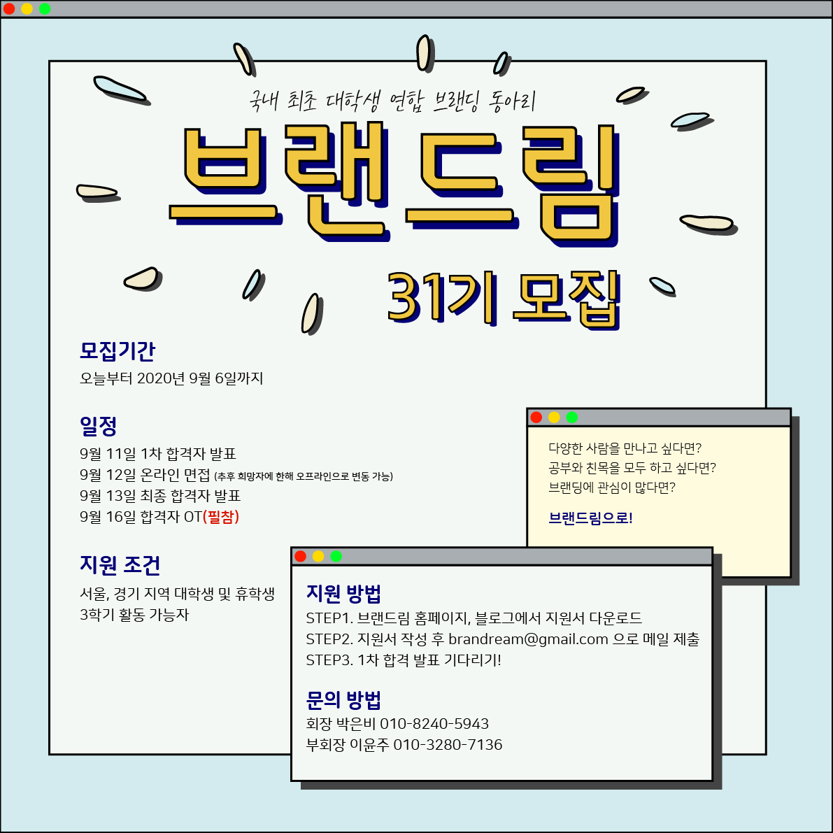 [D-2]국내 최초 대학생 연합 브랜딩 동아리 “브랜드림”에서 31기를 모집합니다! (~9월 6일)